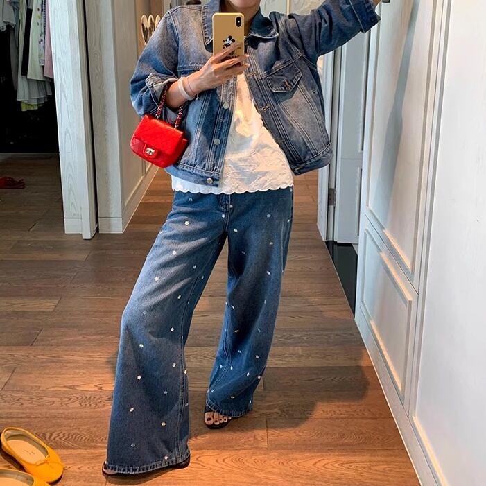 カジュアルなスタイルに上品さをプラスしたい方におすすめのワイドレッグデニム。
