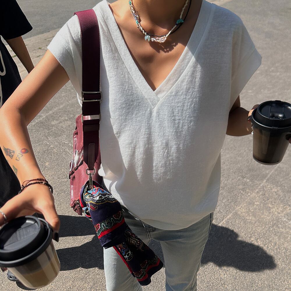 V-neck french sleeve tops S0846