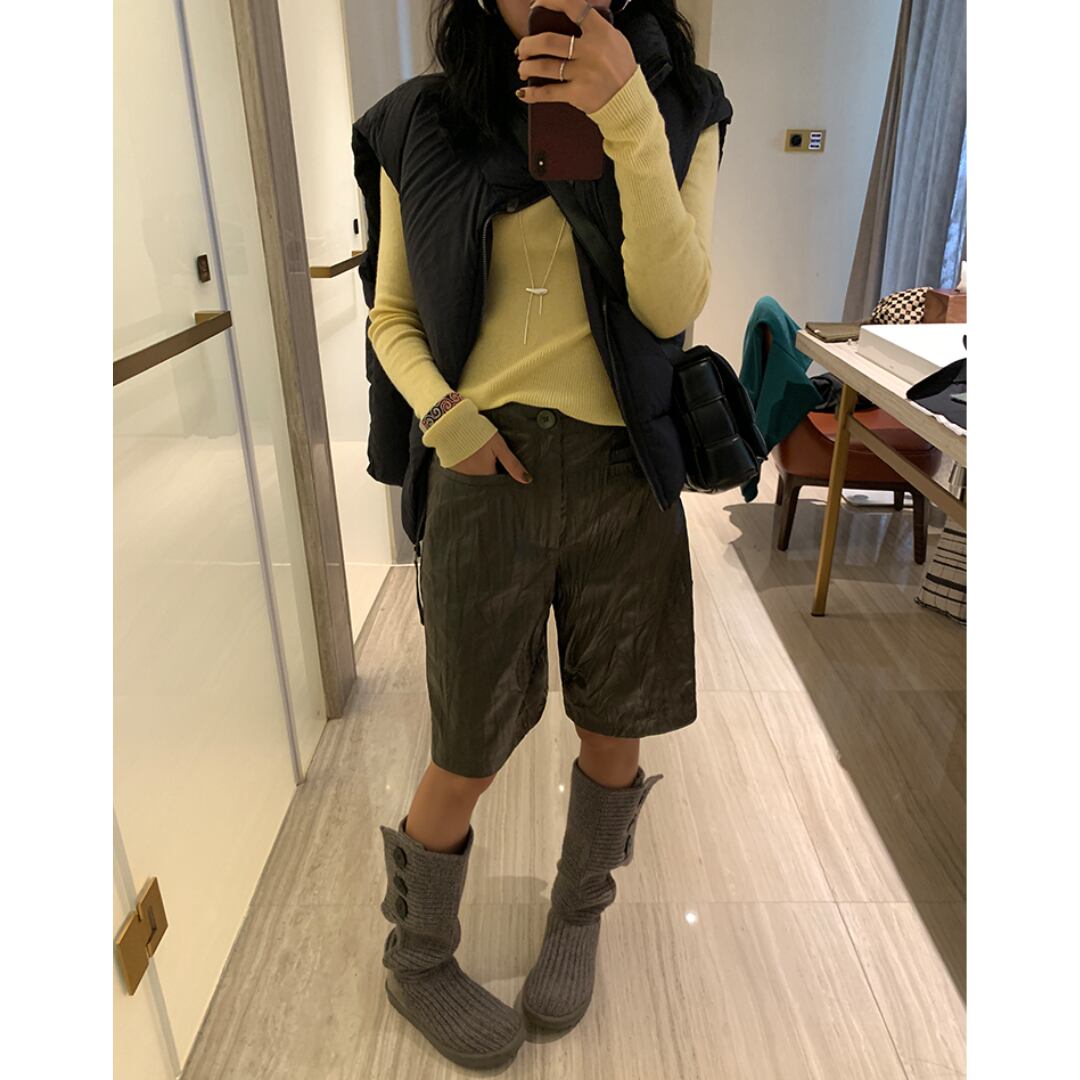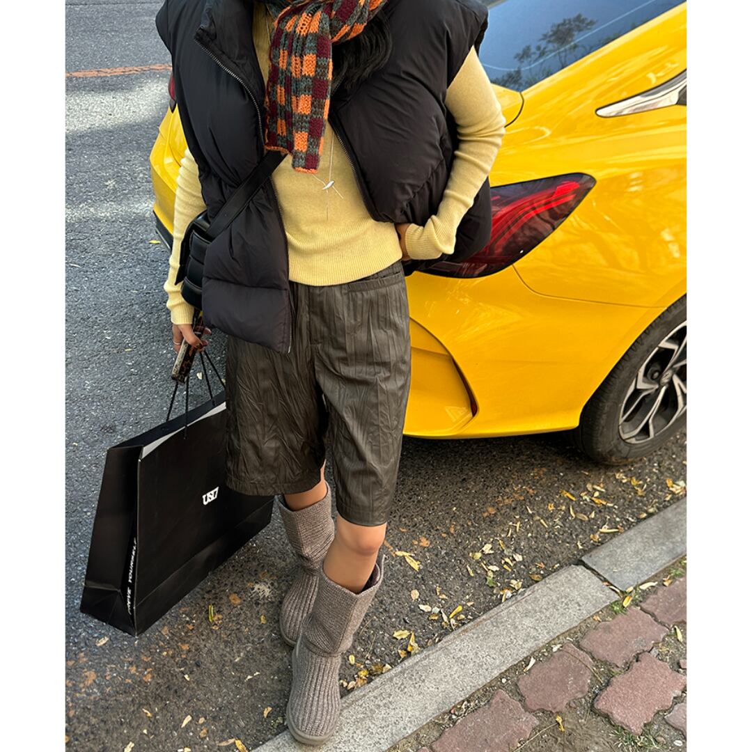 wrinkled fake leather short pants S1352